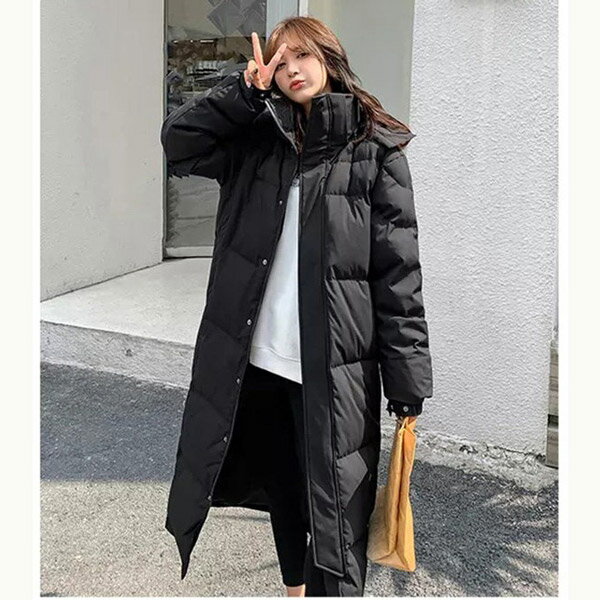ロングダウンコート ダウンジャケット きれいめ アウター 大きいサイズ 暖かい 黒 ブラック 帽子付き 他と被らない ダウン90% 超ロングダウンコートXS S M L XL 2XL 3XL